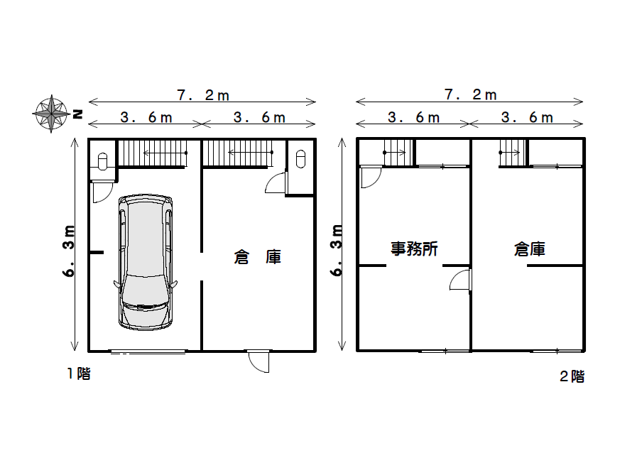 駐車場付き貸倉庫物件、2階には事務所スペース有り!
