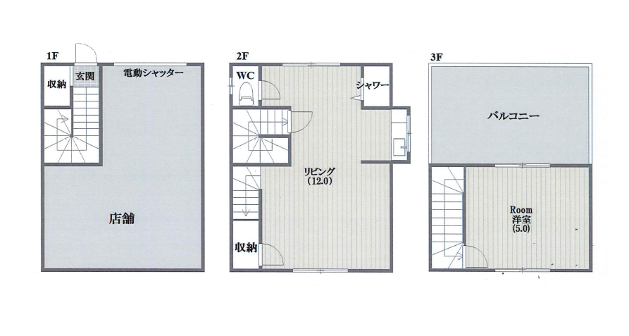 1Fは店舗スペース、2Fと3Fは1LDKの住居スペースとしてご利用いただけます!